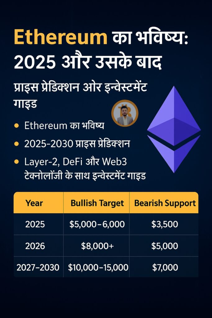 Ethereum рдХрд╛ рднрд╡рд┐рд╖реНрдп рдордЬрдмреВрдд рд╣реИред рдЯреЗрдХреНрдиреЛрд▓реЙрдЬреА, DeFi, NFT рдФрд░ рдЗрдВрд╕реНрдЯреАрдЯреНрдпреВрд╢рдирд▓ рд╕рдкреЛрд░реНрдЯ рдЗрд╕реЗ 2030 рддрдХ $10,000+ рдХреА рд░реЗрдВрдЬ рдореЗрдВ рд▓реЗ рдЬрд╛ рд╕рдХрддрд╛ рд╣реИред